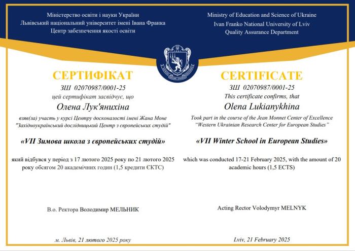 Daniil ZINCHENKO, Associate Professor of the postgraduate and doctoral department of Kharkiv National University of Internal Affairs, successfully completed an online course on the Study.NAZK educational platform on the topic "Anti-corruption and Integrity."