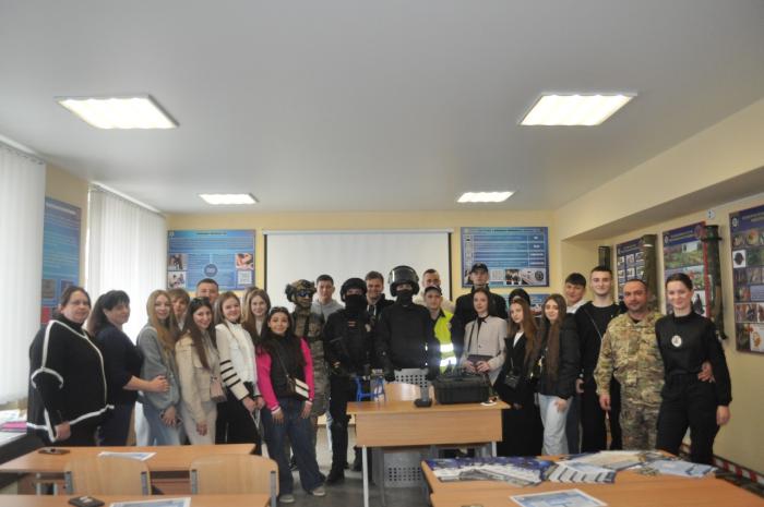 For 1st year cadets of Sumy branch of KhNUIA, a lesson on the topic "Structure and tasks of law enforcement agencies of Ukraine" was conducted by associate professors of the Department of Humanities Hanna DOVHOPOLOVA and Yulia SAMOILOVA with the participation of the senior inspector of the juvenile prevention sector of the prevention department of Sumy DPD of the Main Police Department in Sumy region Ivan POLULIAKHOV.