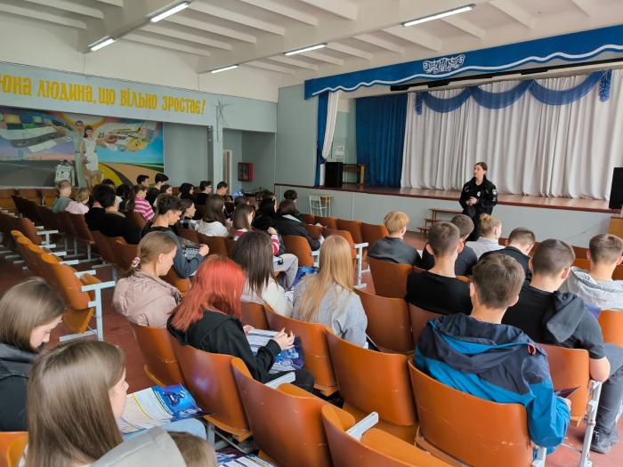 A meeting of cadets with specialists of the Department of Criminal Analysis of the MDNP in Kharkiv region took place at the ERI No. 4. Deputy Head of the Department of Analytical Work Andrii SERVATOVSKYI and Head of the Department of Operational Monitoring Roman MYSHECHKIN discussed with the applicants the peculiarities of the activities of criminal analysts.