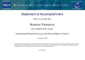 Associate Professor of the Department of Criminal Law and Criminology of the ERI No. 1 Ksenia YURTAIEVA completed the online course "International Humanitarian Law and Human Rights". The course was developed by the Council of Europe within the framework of the Human Rights Education Program for Legal Professionals (HELP). https://univd.edu.ua/uk/news/22402