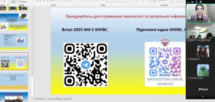 On the initiative of Yulia TATARKINA, associate professor of the Department of Criminal Law and Criminology of the ERI No. 5, representatives of the department held an online career guidance meeting with high school students. Associate professor of the department Vladyslav KUNDEUS and senior lecturer Yulia MYTROFANOVA told the lyceum students about Kharkiv National University of Internal Affairs. https://univd.edu.ua/uk/news/22950