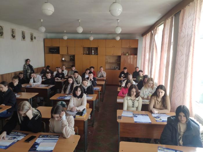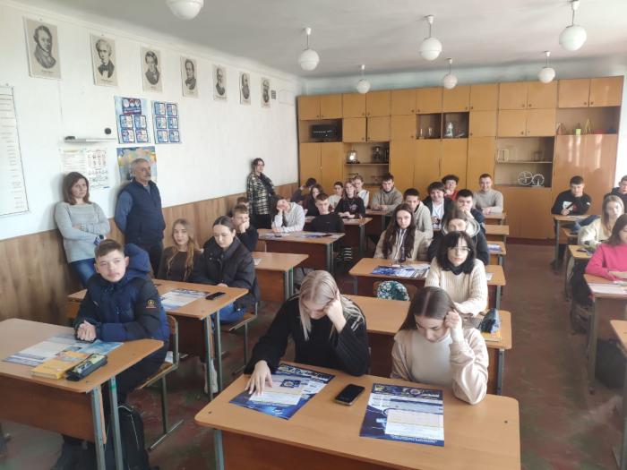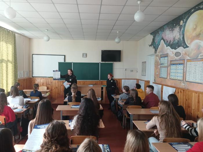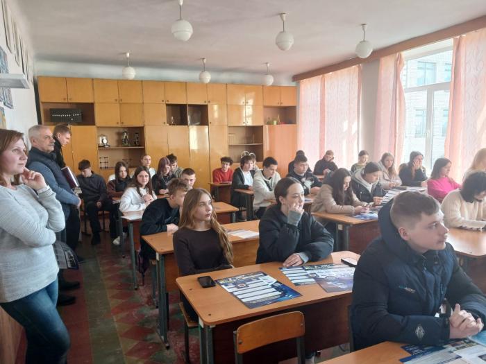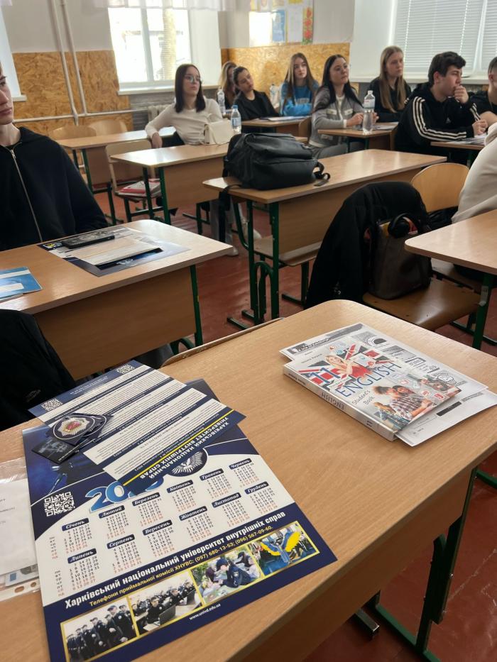 The Department of Organization of Career Guidance of Kharkiv National University of Internal Affairs, with the support of inspectors of the educational security service who work in lyceums and gymnasiums of the city of Berdychiv, organized a series of meetings with students. The event took place in gymnasiums No. 1 named after T. H. Shevchenko, No. 5, No. 8, No. 17, as well as in Berdychiv city lyceum No. 15. https://univd.edu.ua/uk/news/22985