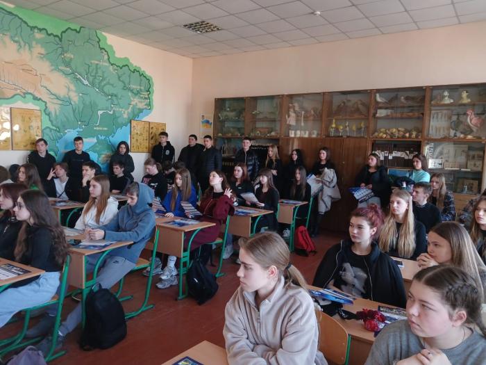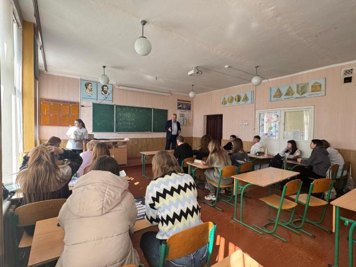 In order to popularize the profession of a police officer, employees of the department for organizing professional guidance work at KhNUIA, together with the Assistant to the Rector Viktor SLYSH and juvenile prevention workers, held a series of career guidance meetings with students in grades 10-11 of educational institutions in the city of Skvyra. https://univd.edu.ua/uk/news/23171