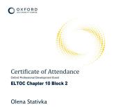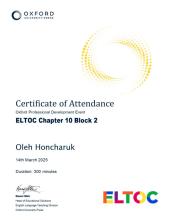 The scientific and pedagogical staff of the Department of Language Training of KhNUIA - Head of the Department Olena STATIVKA, Professor Oleh HONCHARUK, Associate Professors Valentyna POCHUIEVA and Valentyna KOCHYNA, Senior Lecturers Larysa SAZANOVA and Artem BILOUSOV - attended the three-day International Online Webinar "ELTOC Chapter 10 Block 2". https://univd.edu.ua/uk/news/23599