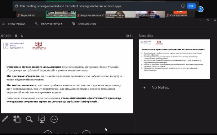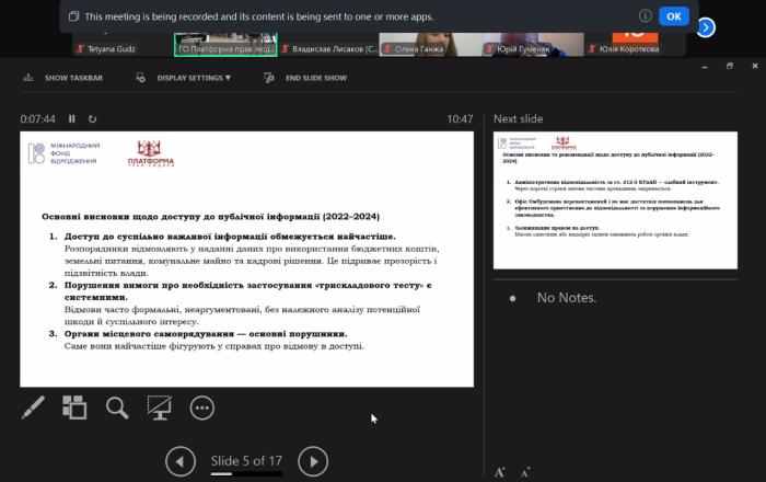 The Head of the Department of Constitutional and International Law and Human Rights, Tetiana HUDZ, joined the round table "Status of Compliance with the Right to Access to Public Information in 2022–2024", which was held in a mixed format. https://univd.edu.ua/uk/news/23791