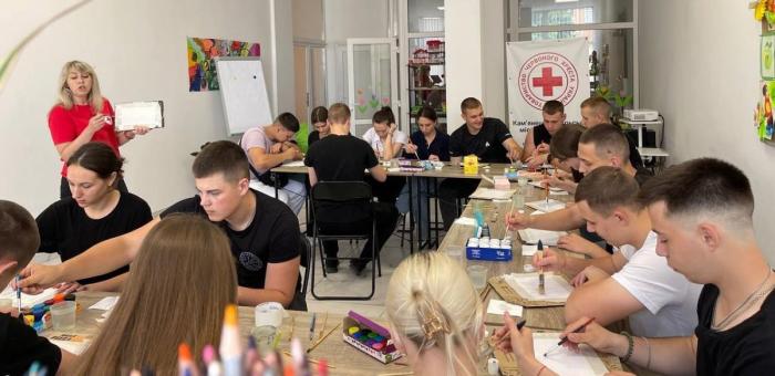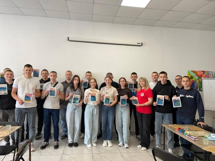 1st-2nd year cadets of Sumy branch of KhNUIA, together with the psychologist of the personnel department Hanna YAROVA, took part in a series of therapeutic classes in art therapy and neurography, which were conducted by psychologists of the Ukrainian Red Cross Society Olena BUDZINSKA and Tetiana SYCHOVA. https://univd.edu.ua/uk/news/24423