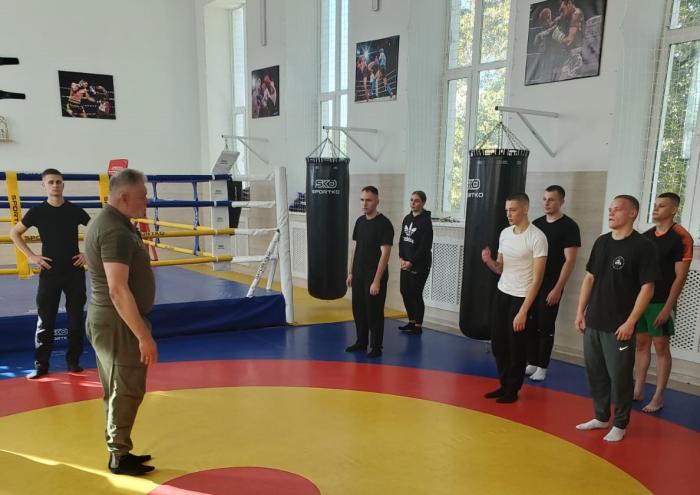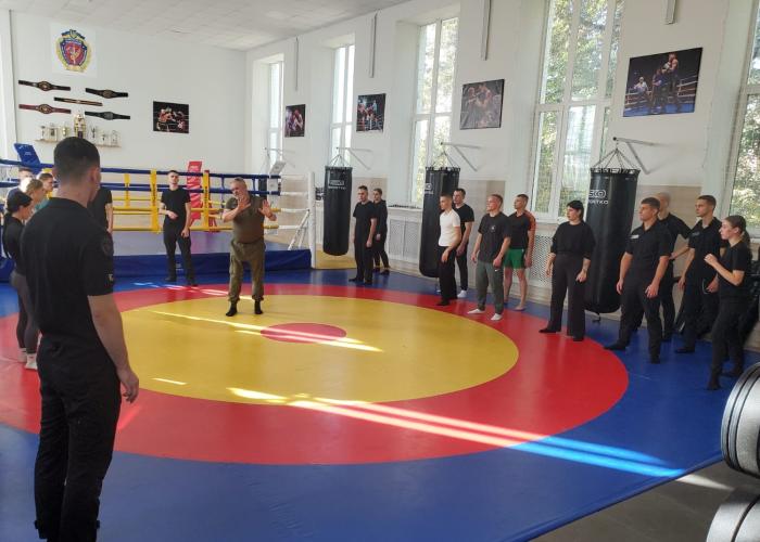 Senior lecturer of the Department of Special Physical Training of the ERI No. 2 Mykhailo INSHEKOV and lecturer Andrii LADYNIAK conducted a lesson for students of the ERI No. 4 on the topic "Improving the technique of performing strikes with hands and feet. Combined actions". The event was held with the participation of international master of sports Valerii HALAN. https://univd.edu.ua/uk/news/25105