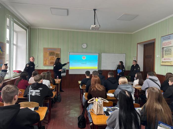 The Department of Organization of Professional Orientation Work of Kharkiv National University of Internal Affairs, together with representatives of the Human Resources Sector of the Haisyn District Police Department of the MDNP in Vinnytsia Region, held career guidance meetings with graduates of lyceums in the city of Haisyn. https://univd.edu.ua/uk/news/25531
