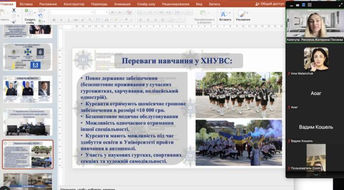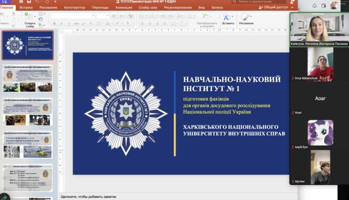 Kateryna PENZIEVA, Senior Lecturer of the Department of Criminalistics and Forensic Science of the ERI No. 1, held a career guidance online meeting with high school students of Kamianets-Podilskyi Lyceum No. 10 of the Kamianets-Podilskyi City Council of Khmelnytskyi region. https://univd.edu.ua/uk/news/26405