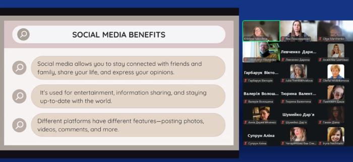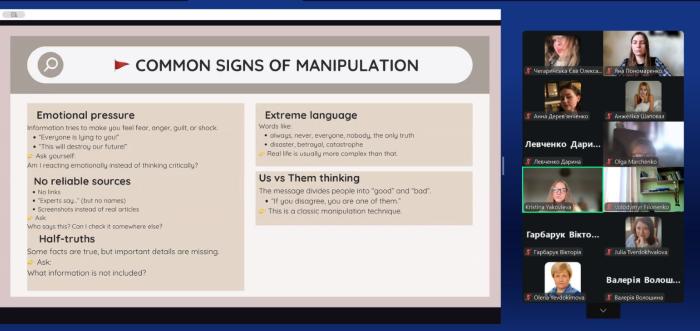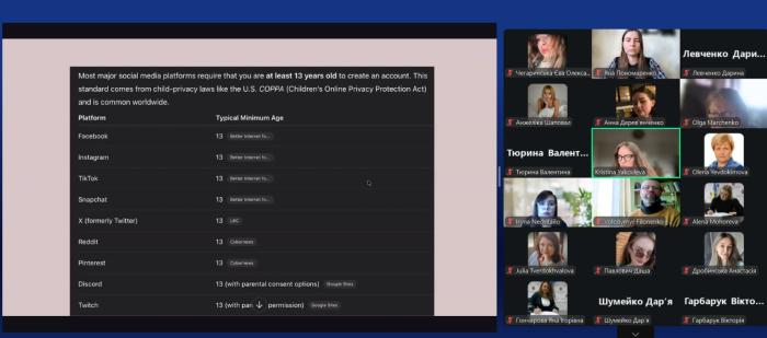 The guest speaker at the meeting was Krystina Yakovlieva (Birmingham, England, UK), who presented modern approaches to the development of critical thinking, recognition of information manipulation, and the formation of safe and responsible behaviour on social networks.