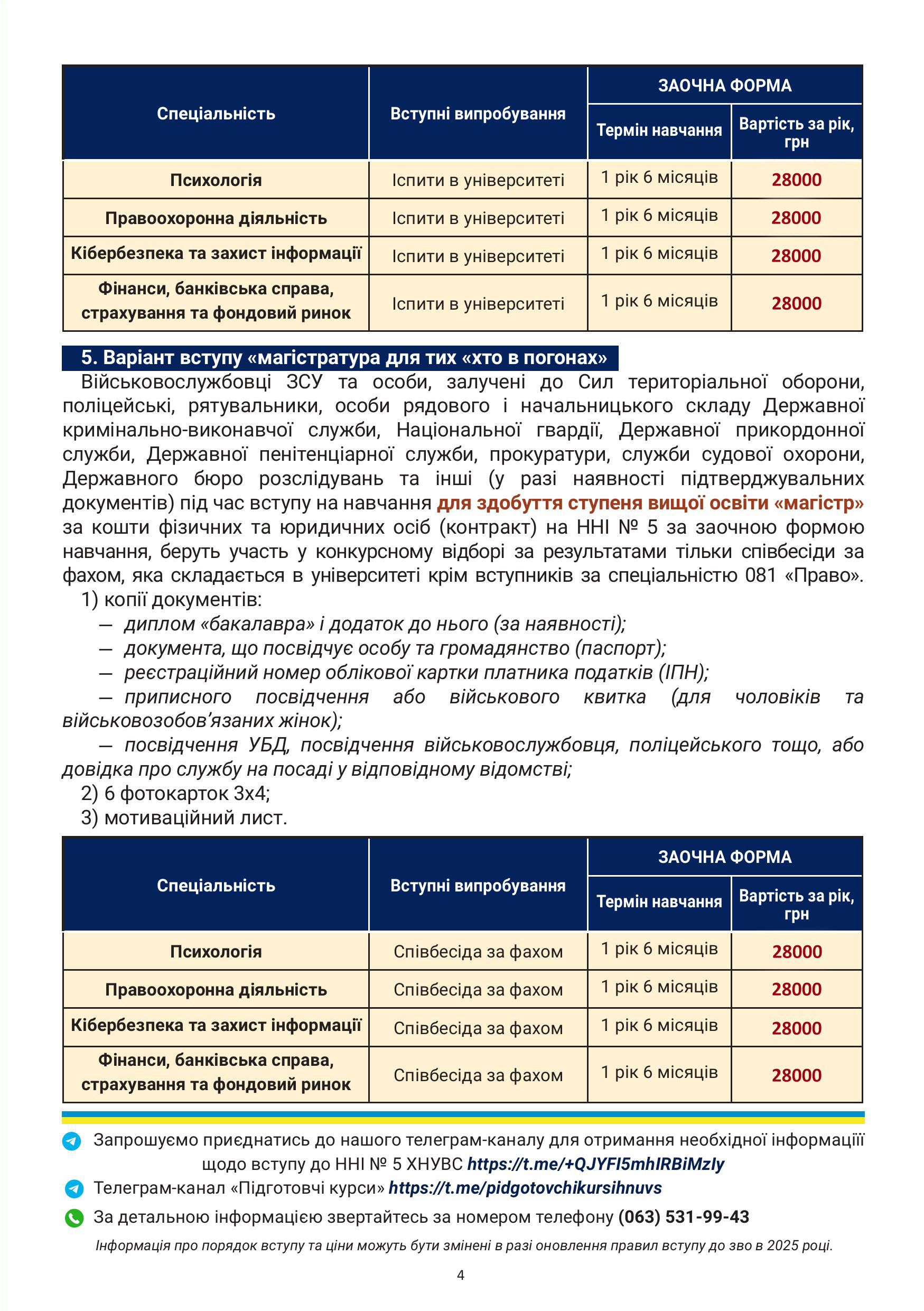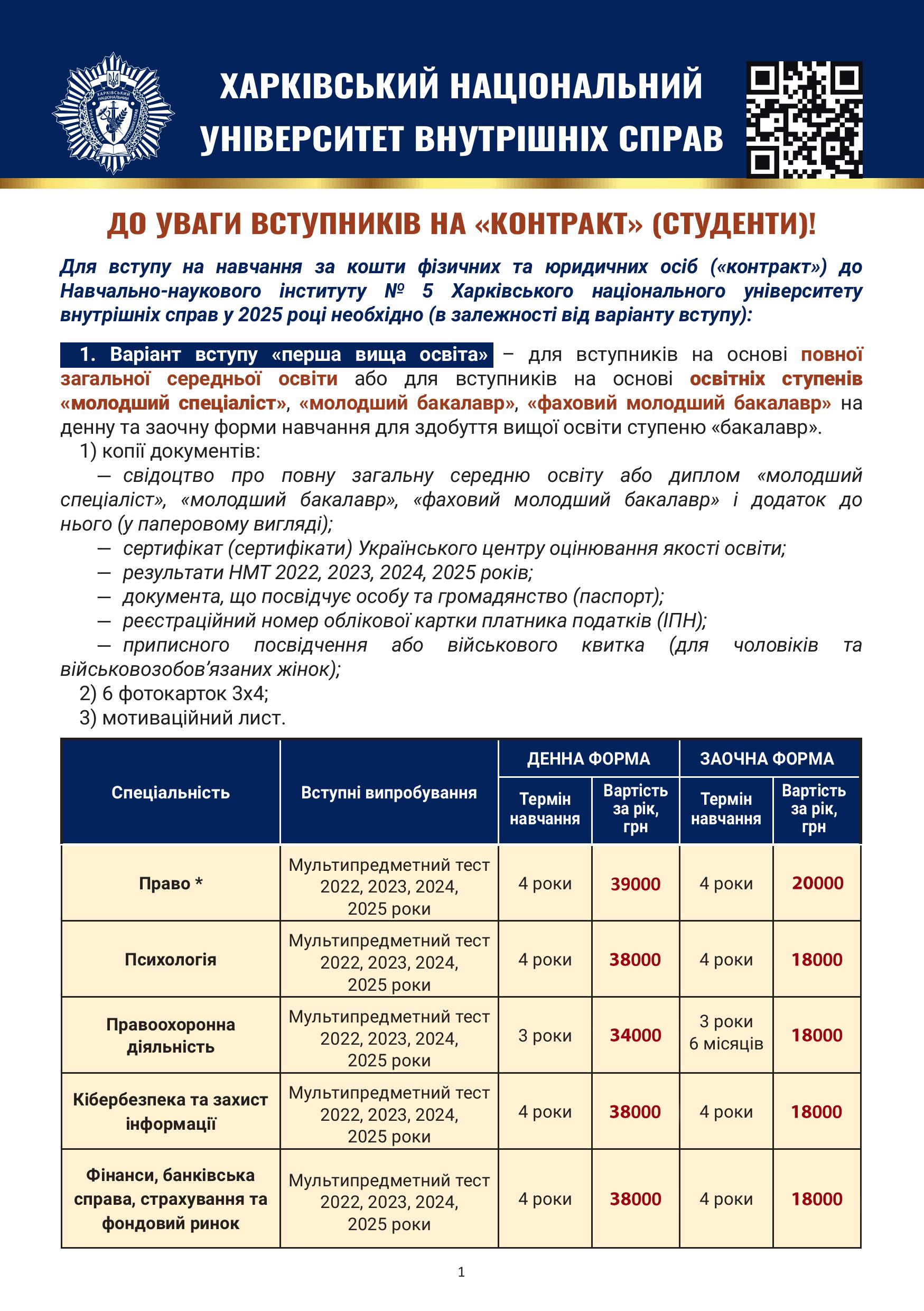 До уваги вступників на навчання за рахунок коштів фізичних та/або юридичних осіб Навчально-наукового інституту № 5 ХНУВС!