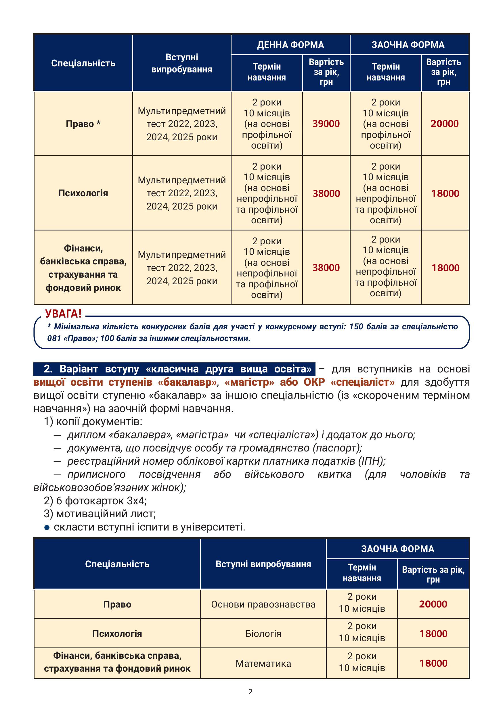 для вступу на навчання за кошти юридичних та фізичних осіб в Навчально-науковому інституті № 5 ХНУВС