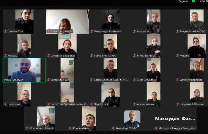 Старший психолог відділу психологічного забезпечення УКЗ ГУНП у Харківській області Руслан Лоладзе та професорка кафедри психології, соціології та педагогіки ННІ №3 Світлана Харченко провели онлайн бінарне заняття на тему «Стилі особистості» для курсантів 2 курсу ННІ №3, які навчаються за спеціальністю «Психологія», з навчальної дисципліни «Диференціальна психологія».