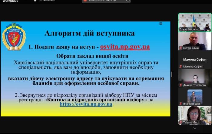 До онлайн-зустрічі приєдналися понад 100 випускників ліцеїв. Вони отримали необхідну інформацію про особливості вступу та навчання в університеті, дізналися про роботу підготовчого відділення. Багато юнаків висловили зацікавленість у вступі на денну форму навчання за державним замовленням.