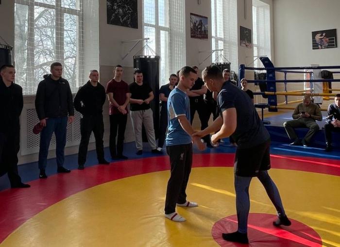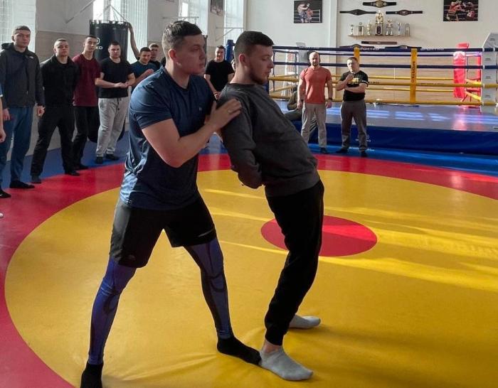 Практичне заняття провели інспектор взводу №2 роти тактико-оперативного реагування Управління патрульної поліції у Хмельницькій області ДПП Дмитро Орищук разом із працівниками кафедри спеціальної фізичної підготовки ННІ №2 – старшими викладачами Михайлом Іншековим та Ігорем Островським.