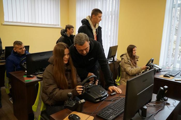 Керівник Автошколи Олександр Марунчак розповів учням і викладачам, у яких рідні чи близькі є учасниками бойових дій та отримали інвалідність, що в Автошколі для осіб з інвалідністю ХНУВС можна пройти навчання та отримати посвідчення водія категорії «В». Юнакам і дівчатам також надали можливість випробувати навички водіння на комп'ютерних тренажерах в аудиторії Автошколи.