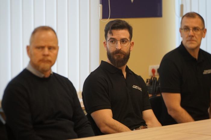 Від імені ректора університету Валерія СОКУРЕНКА гостей привітав Віктор ВАСИЛЕНКО та наголосив на важливості співпраці з європейськими партнерами у сфері реформування правоохоронної системи України та підвищення кваліфікації правоохоронців. У своїй промові він підкреслив значний досвід, який мають як викладачі й офіцери університету, так і курсанти, які виконують професійні обов’язки на територіях, наближених до ліній бойових зіткнень. Це дозволяє їм активно долучатися до організації та проведення навчальних тренінгів від Консультативної місії Європейського Союзу в Україні, виступаючи у ролі тренерів-експертів. «Така співпраця сприяє не лише професійному розвитку, але й значно посилює партнерські відносини між університетом і Місією, забезпечуючи високу якість спільної роботи», – зазначив перший проректор.