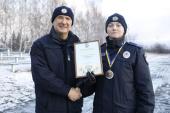 Ректор також поздоровив курсантку 1 курсу ННІ №2 Яну ШЕЛЕМБУ, яка виконала норматив майстра спорту України міжнародного класу зі змішаних єдиноборств ММА та отримала відповідне посвідчення і нагрудний знак.
