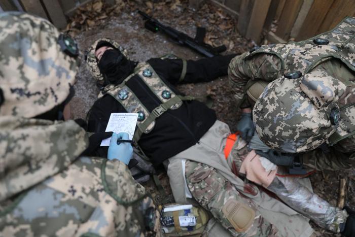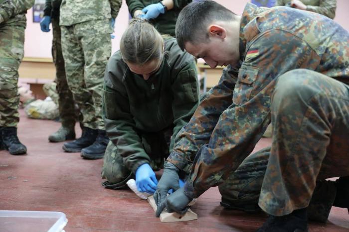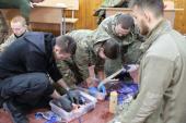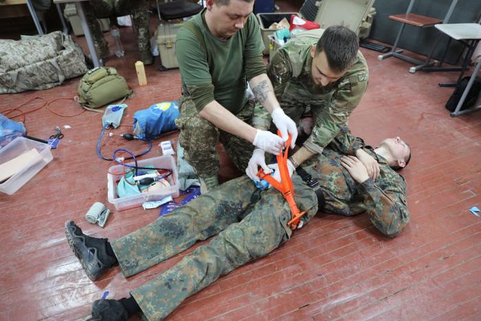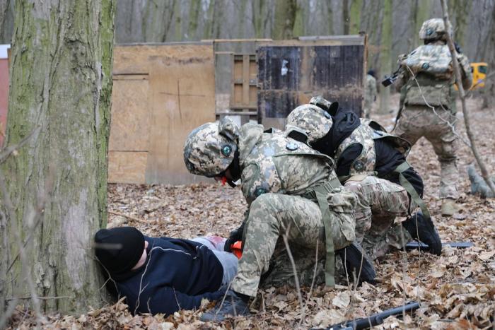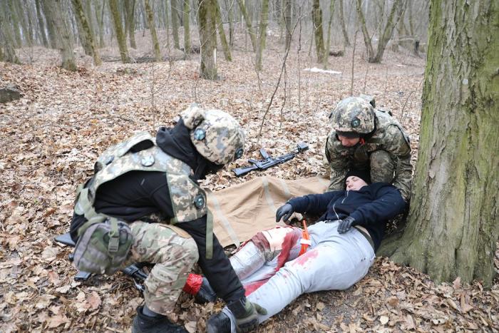 Учасники навчального практико-теоретичного тренінгу під керівництвом ветеранів бойових дій – сертифікованих інструкторів з тактичної медицини – продовжують активно працювати над питаннями надання само- та взаємодопомоги пораненим на догоспітальному етапі.