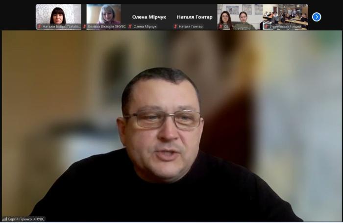 Заступник директора з освітньої та науково-дослідної діяльності ННІ №2 Сергій ГІРЕНКО разом із доцентками кафедри соціальних та економічних дисциплін Вікторією ВЕЛІЄВОЮ та Наталією БОБРО провели онлайн-зустріч з учнями та педагогічними колективами закладів загальної середньої освіти за сприянням гуманітарного відділу Городищенської сільської ради.