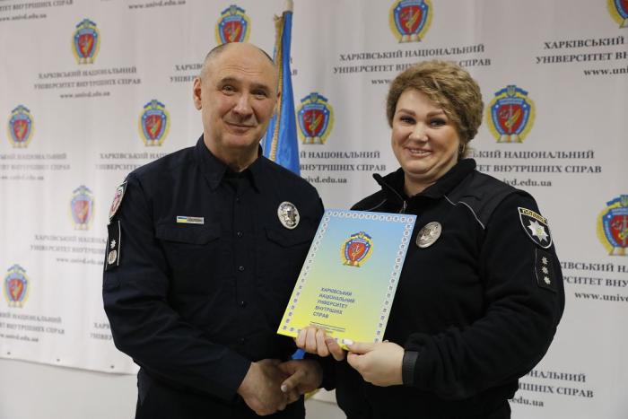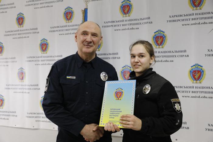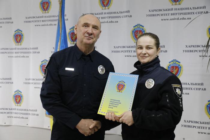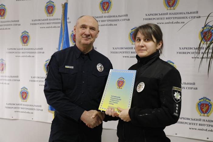 Під час заходу Грамоти від виконавчого комітету Кам’янець-Подільської міської ради вручили старшому лейтенанту поліції Оксані КРИЖАНІВСЬКІЙ та лейтенанту поліції Єгору СКУРІХІНУ за зразкове ставлення до виконання службових обовязків, значні успіхи у навчанні, сумлінне та бездоганне служіння народові України, ініціативу і наполегливість та вагомий особистий внесок у навчальний процес.