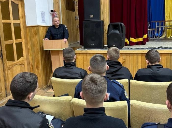 У занятті взяв участь поліцейський офіцер громади сектору взаємодії з громадами ВП №3 Стрижавської громади РУП ГУНП у Вінницькій області Дмитро КОЛІСНІЧЕНКО. Він поділився з курсантами практичним досвідом, розповів про особливості організації та проведення силових заходів в умовах підвищеної оперативної складності, наголосив на важливості взаємодії з іншими органами влади та громадськими формуваннями під час проведення поліцейських операцій. Офіцер поліції також навів практичні приклади застосування спеціальних адміністративно-правових режимів у складних ситуаціях.