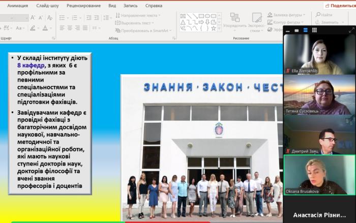 Доцент кафедри кримінального процесу, криміналістики та експертології ННІ №5 Дмитро ЗАЯЦЬ разом із директоркою інституту Оксаною БРУСАКОВОЮ і її заступницею Еллою ТВЕРДОХЛІБ зустрівся зі старшокласниками та класними керівниками Харківського ліцею №103 Харківської міської ради. Ліцеїстів ознайомили зі спеціальностями, за якими здійснюється підготовка фахівців, особливостями навчання у ННІ №5 та організацією підготовки абітурієнтів на підготовчих курсах. Під час зустрічі Дмитро ЗАЯЦЬ презентував кафедру кримінального процесу, криміналістики та експертології інституту та розповів про дисципліни, які викладаються, основні напрями дослідження науковців, особливості проведення практичних занять зі студентами, під час яких відпрацьовуються навички з виявлення, дослідження і фіксації доказів.