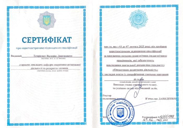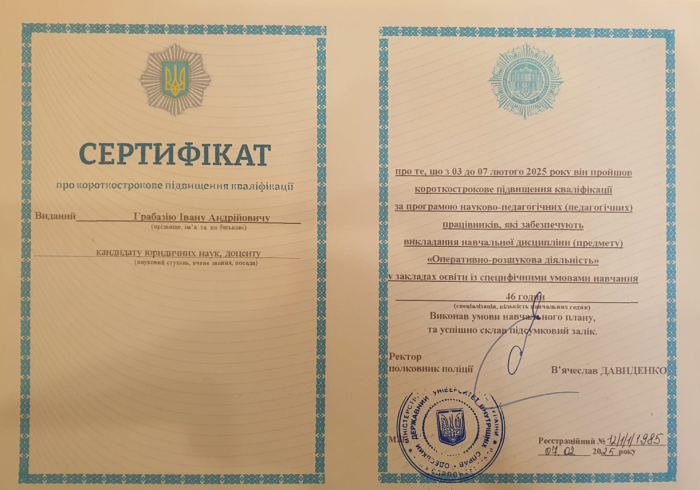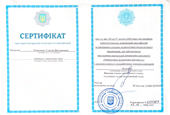 За такою темою завершив навчання науково-педагогічний склад кафедри оперативно-розшукової діяльності та розкриття злочинів ННІ №2 ХНУВС. Захід проходив на базі ОДУВС під керівництвом Департаменту освіти, науки та спорту МВС спільно з Національною поліцією України.