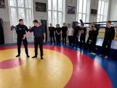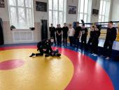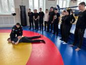 За такою темою бінарне заняття для курсантів 3 курсу ННІ №4 із дисципліни «Спеціальна фізична підготовка» провели доцент кафедри спеціальної фізичної підготовки ННІ №2 Богдан ЛУКІН і викладач цієї ж кафедри Роман ПАВЛОВ спільно з поліцейським взводу 1-ї роти 1 БПП з обслуговування Кам’янець-Подільського району Управління патрульної поліції Хмельницької області Департаменту патрульної поліції Євгеном ПАЗЮКОМ. Під час заняття були відпрацьовані практичні питання: захист від ударів руками й ногами; захист від обхоплень, захоплень; виконання спеціальних прийомів боротьби.