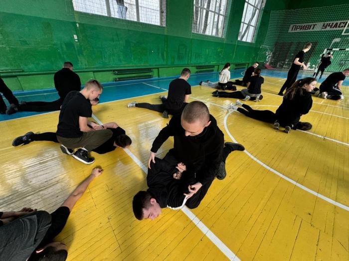 З цією метою поліцейський СРПП відділу поліції №1 Кременчуцького РУП ГУНП у Полтавській області Євгеній СОРОКІН на запрошення викладачів кафедри спеціальних поліцейських дисциплін та базової загальновійськової підготовки Сумської філії ХНУВС провів заняття для курсантів 1 курсу з дисципліни «Спеціальна фізична підготовка». Під час заняття курсанти відпрацювали прийоми затримання правопорушника.