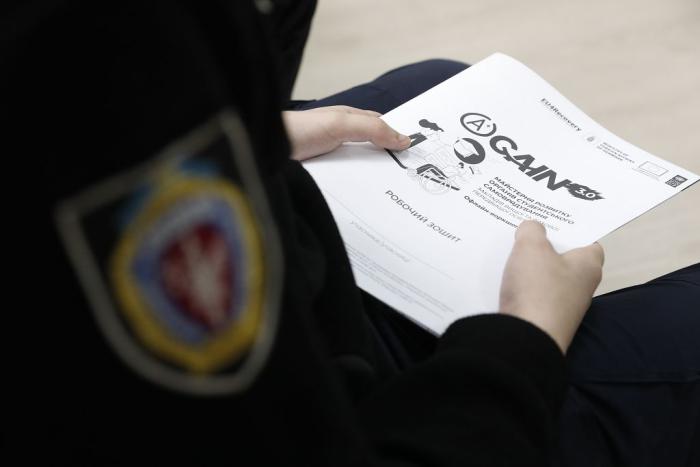 До проведення тренінгу долучився тренер від ПРООН, який поділився цінним досвідом і методиками розвитку органів самоврядування з групою із 20 представників навчально-наукових інститутів №№1-5, які є членами курсантсько-студентського самоврядування.