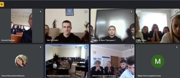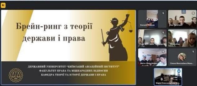 Курсанти 1 курсу ННІ №3 Євгеній НОВІКОВ, Ольга ДОВГАНЬ, Дарія САЛЬНІЧЕНКО, Павло ВИГОВСЬКИЙ і курсант 2 курсу ННІ №4 Євгеній ЦІСАР дистанційно взяли участь у брейн-рингу з теорії держави та права. Організаторами інтелектуальної гри виступив факультет права та міжнародних відносин Державного некомерційного підприємства «Державний університет «Київський авіаційний інститут» та Київська міська організація «Союз юристів України». Команда ХНУВС «Безпечна країна» на чолі з її капітаном Євгенієм НОВІКОВИМ, членом наукового гуртка кафедри теорії та історії держави та права (наукова керівниця – доцентка кафедри Юлія БЕЗУСА), посіла почесне III місце та отримала кубок і дипломи.