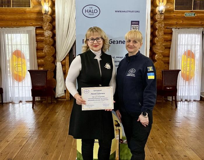Доцентка кафедри кримінального процесу, криміналістики та експертології, кандидатка психологічних наук, доцентка ННІ №5 Світлана ЛОЗОВА і викладач кафедри фізичного виховання та спеціальних дисциплін ННІ №5 Олександр МАРТИНЕНКО пройшли тренінговий курс для інструкторів «Навчання ризикам, пов’язаним з вибухонебезпечними предметами». Захід був організований міжнародною організацією «The HALO Trust», що є найбільшою у світі організацією з гуманітарного розмінування.