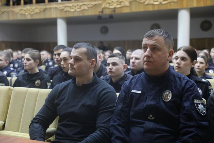У зустрічі також взяли участь проректори, полковники поліції Сергій БОРТНИК, Олександр МУЗИЧУК, проректор Михайло БУРДІН, директори навчально-наукових інститутів №№ 2, 3 Василь КІКІНЧУК, Геннадій ЗВІРЯНСЬКИЙ та ін. Ректор побажав випускникам успішно захистити матеріали стажування, скласти іспити та приступити до виконання обов’язків за місцем служби. Він нагадав про дотримання правил особистої безпеки, етики правоохоронця та службової дисципліни. Валерій Васильович зазначив, що роки навчання промайнули швидко, але університет став рідним на все життя для кожного з присутніх. Наголосив, що тут завжди будуть раді бачити кожного, радіти успіхам і досягненням: «Ви – наша гордість!».