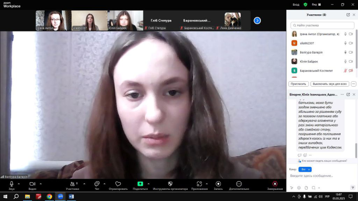 Адвокатеса розповіла про свій професійний шлях та запропонувала студентам випробувати себе в ролі майбутнього правника під час розгляду практичного завдання. Вона наголосила, що майбутнім юристам необхідно користуватись такими інтернет-ресурсами: