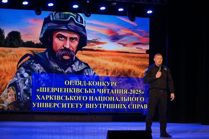 У Харківському національному університеті внутрішніх справ на вшанування пам’яті поета Тараса Григоровича Шевченка відбувся конкурс «Шевченківські читання-2025». У ньому взяли участь команди навчально-наукових інститутів №№1-5, Сумської філії та Кременчуцького льотного коледжу, які змагалися у двох номінаціях «Декламування твору Тараса Шевченка» та «Оригінальний жанр». Виступи конкурсантів оцінювало компетентне журі, до складу якого увійшли: голова Кам'янець-Подільської районної військової адміністрації Хмельницької області Олександр АНУР'ЄВ, Кам’янець-Подільський міський голова Михайло ПОСІТКО, заступник начальника Кам'янець-Подільського РУП ГУНП у Хмельницькій області Ігор БЕЗПАЛИЙ, голова правління футбольного клубу «Епіцентр» Федір ДАНІВ, начальниця відділу соціально-гуманітарної роботи Олена САШУРІНА, начальник відділу організації служби Віталій ТАРАСЕНКО, завідувач відділення продовольчого забезпечення відділу матеріального забезпечення Сергій СУБОТА. Очолив роботу журі проректор університету Сергій БОРТНИК.