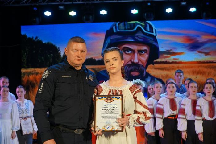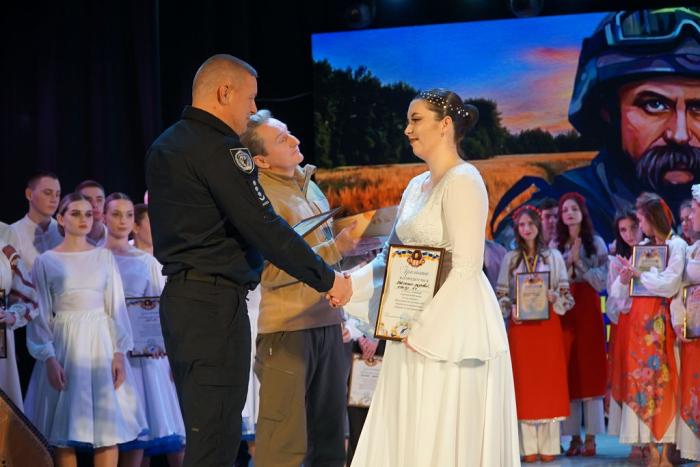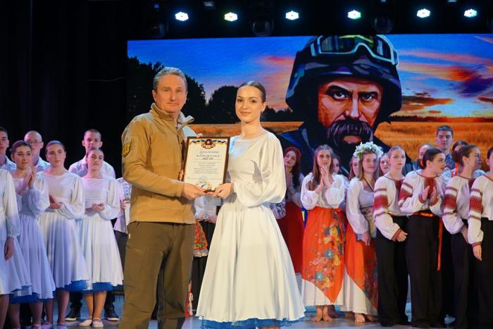 За вагомий внесок у національно-патріотичне виховання здобувачів вищої освіти університету, популяризацію української культури та традицій, сприяння творчому й інтелектуальному розвитку молодого покоління як запоруки успішного майбутнього української нації Подяку Харківського національного університету внутрішніх справ проректор університету вручив: