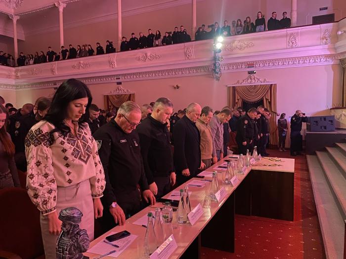 Хвилиною мовчання присутні вшанували світлу пам'ять, стійкість та героїчний подвиг воїнів, полеглих під час виконання бойових завдань із захисту державного суверенітету та територіальної цілісності України, а також мирних громадян, які загинули у наслідок збройної агресії російської федерації проти України.