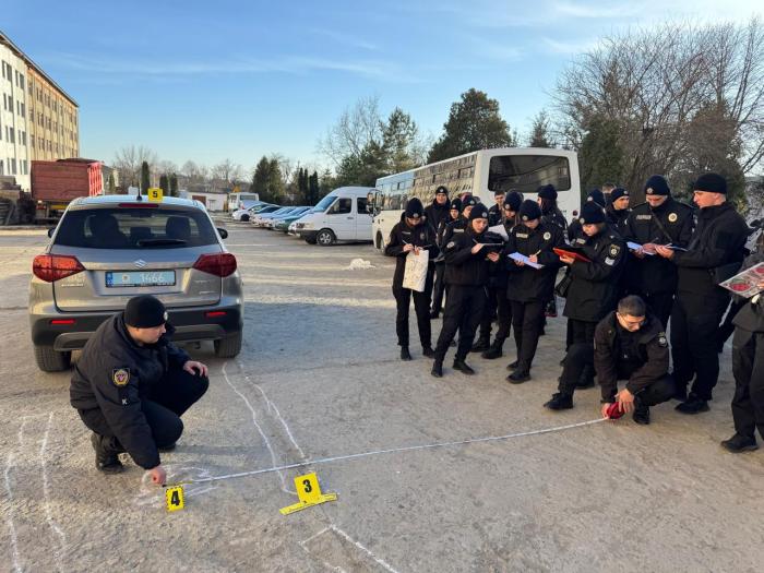 На підставі отриманих знань здобувачі вищої освіти самостійно провели огляд місця події імітованої дорожньо-транспортної пригоди зі складанням протоколу огляду місця події та схеми до нього. По завершенню навчань представники слідчого управління оцінили результати роботи курсантів.