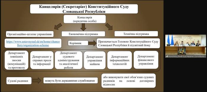 Під час заходу було розглянуто особливості діяльності Конституційного Суду Словацької Республіки, проведено паралелі з функціонуванням Конституційного Суду України та проаналізовано позитивні аспекти, що можуть бути використані у вітчизняній судовій практиці. Окремий акцент зроблено на інституті конституційної скарги у Словацькій Республіці та його особливостях у порівнянні з українським законодавством.