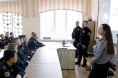 Співробітники поліції розповіли про напрямки та специфіку роботи їхнього підрозділу, а також продемонстрували презентацію та відеосюжети щодо сучасних засобів забезпечення ефективності роботи у підрозділах поліції: дистанційне спостереження, опитування поліграфом, портативні відеореєстратори VB 400, прилади голосового супроводження порядку отримання та здачі вогнепальної зброї, система Custody Records, домофони для з'єднання громадян із черговим нарядом тощо. Також вони звернули особливу увагу здобувачів освіти на необхідність дотримання принципу законності та забезпечення правопорядку в майбутній практичній діяльності.