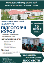 Набір слухачів на підготовче відділення триває, заняття чергового потоку почнуться 15 березня 2025 року та проводитимуться щосуботи. Навчально-методичне забезпечення здійснюється з використанням платформи «Moodle» на сайті ХНУВС. Для зручності слухачів підготовчого відділення створено телеграм-групу https://t.me/pidgotovchikursihnuvs; e-mail: [email protected] для прийняття заяв від абітурієнтів; телефон для консультацій + 38 (066) 68-79-579.
