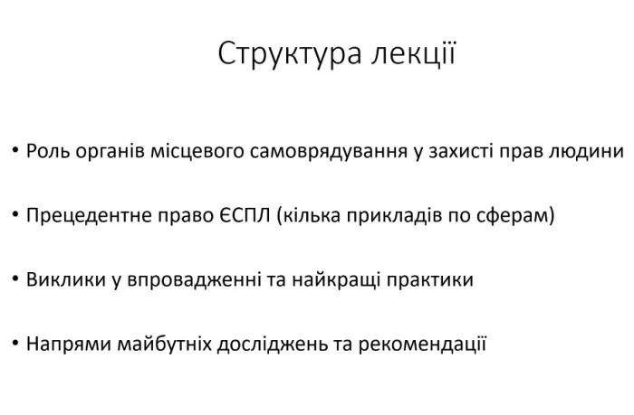 Учасники розглянули ключові аспекти виконання рішень ЄСПЛ органами місцевого самоврядування в Україні, правові механізми імплементації цих рішень, роль місцевих органів у забезпеченні дотримання прав людини, а також виклики, що виникають у процесі виконання судових рішень ЄСПЛ.