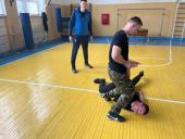 Заняття провели викладач кафедри спеціальної фізичної підготовки ННІ №2 Олександр ШЕПЕЛЕВ і старший дільничний відділення поліції №3 Полтавського РУП ГУНП у Полтавській області Владислав МИХ.