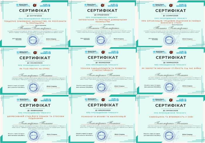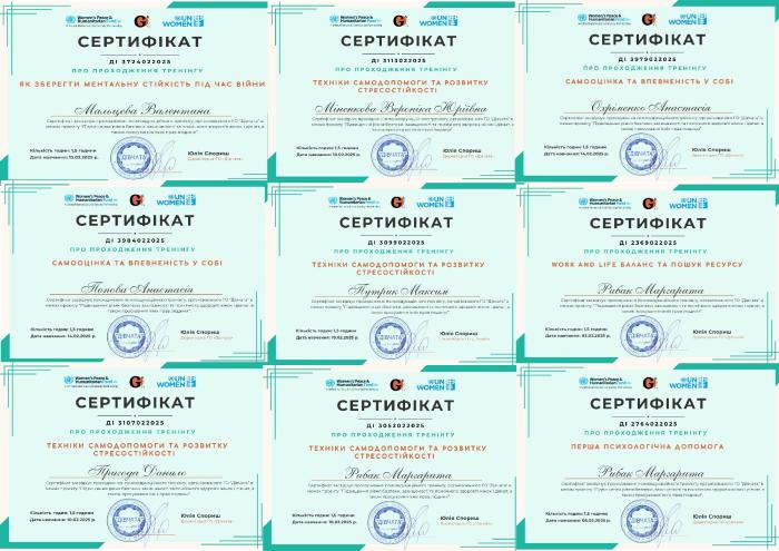 Під час тренінгів учасники обговорили низку важливих питань, зокрема: психологію впливу та маніпуляцій; ґендерно зумовлене насильство; протидію домашньому насильству; першу психологічну допомогу; техніки самодопомоги та розвитку стресостійкості; самооцінку та впевненість у собі; Work & Life: баланс та пошук ресурсу; стрес і техніки відновлення; як тіло реагує на стрес; депресивний стан, його ознаки та способи подолання; професійне вигорання; як зберегти ментальну стійкість під час війни тощо.