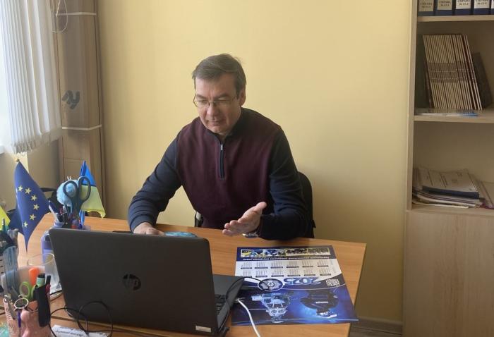 Професор кафедри мовної підготовки ХНУВС Олег ГОНЧАРУК провів тематичну бесіду з випускниками закладів загальної середньої освіти Кіровоградської області щодо вибору майбутньої спеціальності. Він розповів про умови вступу до поліцейського вишу, про спеціальності, за якими готують фахівців. Старшокласники переглянули презентацію про науково-навчальні інститути вишу. Представник університету відповів на запитання та запросив молодь вступати до закладу вищої освіти системи МВС.