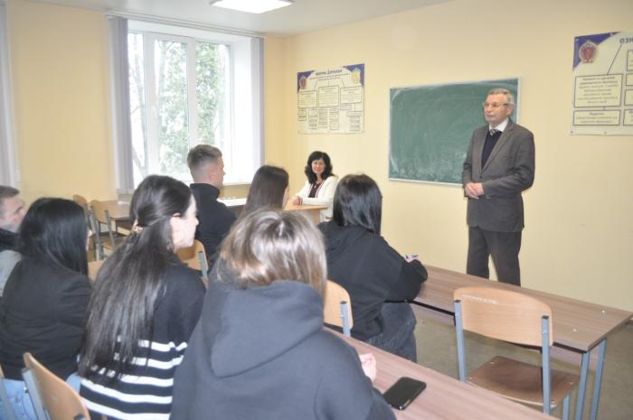 Завідувач кафедри гуманітарних дисциплін та українознавства, доктор історичних наук, професор, заслуженим працівник освіти України Володимир ГРЕЧЕНКО та професорка кафедри правоохоронної діяльності ННІ №5, докторка юридичних наук, професорка Олена СИНЯВСЬКА провели лекційне заняття для студентів ННІ №5 за темою «Формування колективу організації».