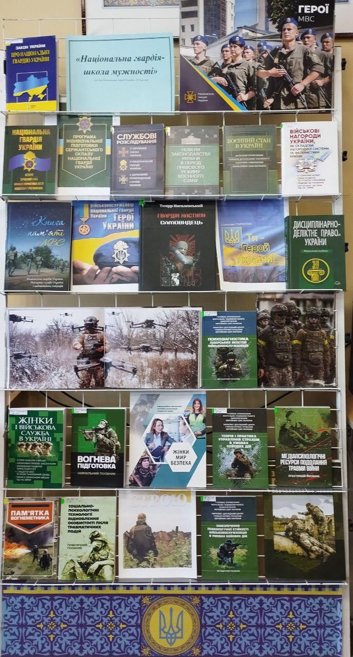 Старші викладачки кафедри мовної підготовки ХНУВС Тетяна КАЛЬЧЕНКО та Лариса САЗАНОВА провели військово-патріотичну бесіду «Військо сильне духом» до Дня Національної гвардії України, який відзначається 26 березня. Разом із курсантами 3 курсу ННІ №4 вони обговорили історію створення, значення та роль Національної гвардії України у виконанні завдань із забезпечення державної безпеки та оборони держави, захисту і охорони життя, прав, свобод та інтересів громадян. Молодь також оглянула тематичну виставку «Національна гвардія – школа мужності», яку підготували співробітниці загальної бібліотеки Ольга ЛАЗАРЕВА, Жанна ЛАЗОРЕНКО та Олена СОВІНСЬКА.