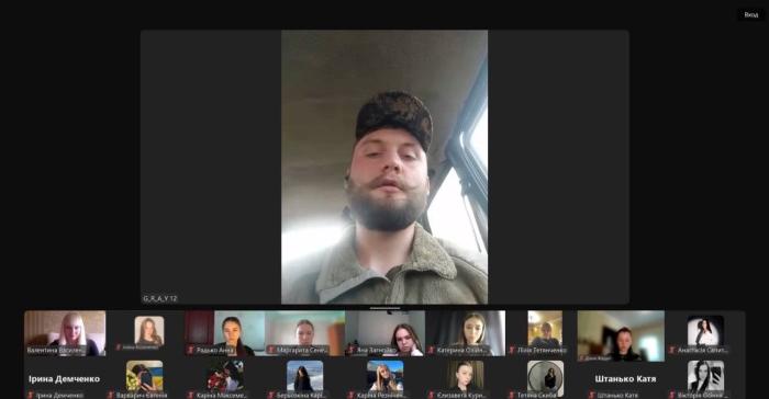 Військовослужбовець поділився практичним досвідом, акцентував увагу на важливості чіткого та грамотного мовлення в умовах військової служби та правозастосовної діяльності, а також надав здобувачам освіти рекомендації щодо культури професійного спілкування.