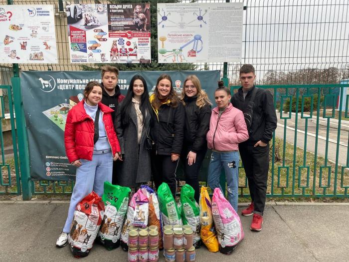 Студентський актив ННІ №5 відвідав КП «Центр поводження з тваринами», щоб не лише пригостити чотирилапих друзів, а й подбати про їхній добробут. Молодь привезла корм, який був закуплений завдяки студентам і директорці інституту Оксані БРУСАКОВІЙ.